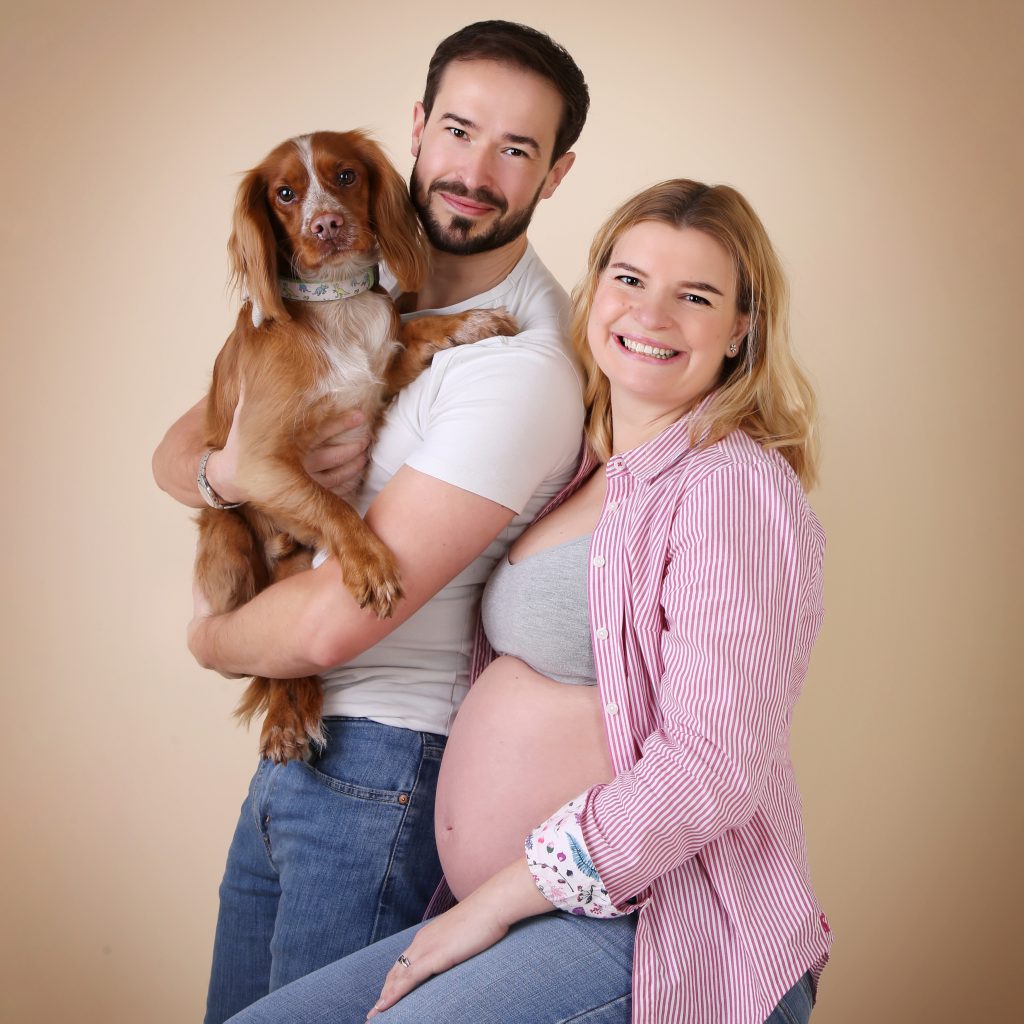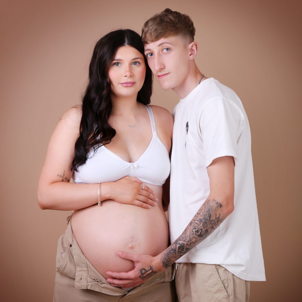 Fitted or flowing outfits that show your bump shape work best. Neutral tones and simple textures photograph beautifully in our studio lighting.