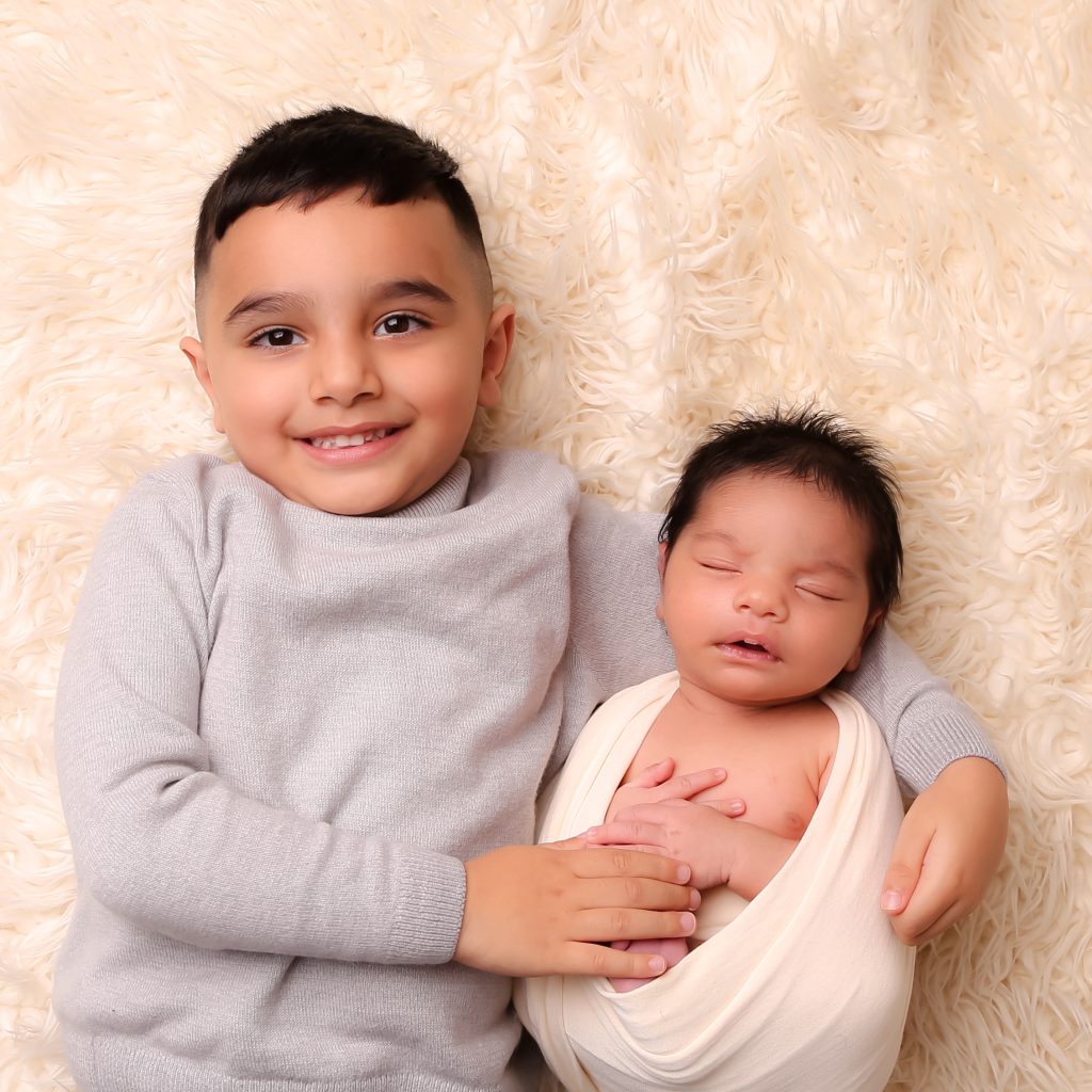We recommend soft neutral clothing to match the backdrop used in newborn sessions. Coordinating outfits helps everything come together nicely in your final images.